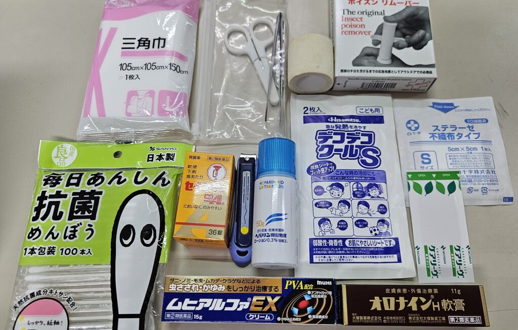 中身は絆創膏やガーゼ、三角巾、虫さされ薬など